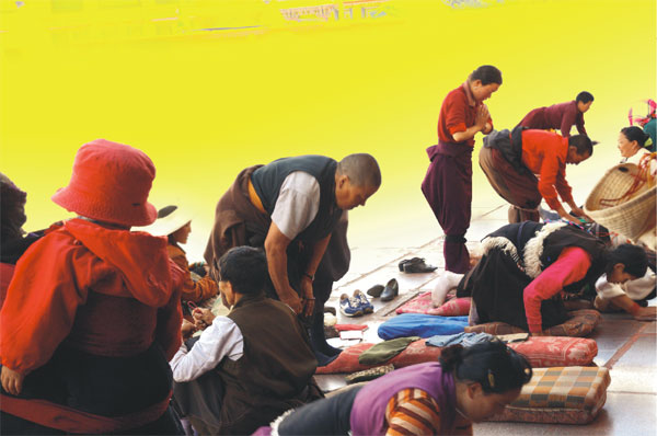 其實每年的這個時候,總有很多人會用身體行走,徒步千里,用心靈丈量這片廣袤的高原土地,用最虔誠的姿勢拜倒在信仰之前,如此卑微,如此辛苦。只是,我看不懂他們。
