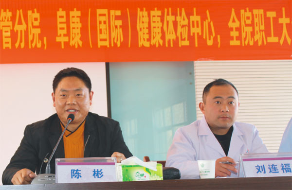 大會開始王斌董事長向大家隆重介紹陳彬總經(jīng)理,陳彬總經(jīng)理與阜康結(jié)交十年,阜康醫(yī)院創(chuàng)院伊始便就職于阜康從事管理工作。陳彬總經(jīng)理軍人出身,作風(fēng)強(qiáng)硬,相信在他的帶領(lǐng)下,未來三年阜康將會有更加明顯的變化和輝煌的成就。王斌董事長作阜康2015年度工作安排和年度計(jì)劃: