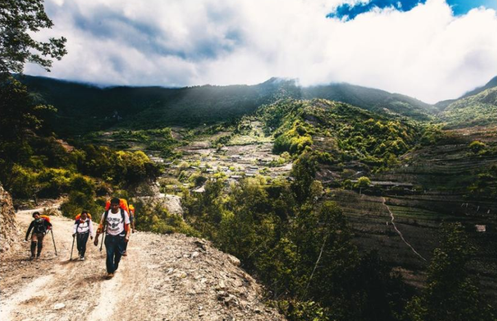 C幫著我裝睡袋的時(shí)候,我默然走下樓到洗澡室往腿上使勁纏裹塑料膜和膠帶。一切預(yù)備完畢,就等著住在益西那邊也是今天出發(fā)的兩位大哥。我們將四人一同走完最后的墨脫行程。那兩位大哥都是資深徒步者,-個(gè)是來自新疆,野外生存能力異常驚人,另一個(gè)算是半個(gè)重慶老鄉(xiāng),他媽媽是特種兵,所以至小就深受影響,熱愛徒步,走完了大半個(gè)中國,已是第七次進(jìn)藏了。