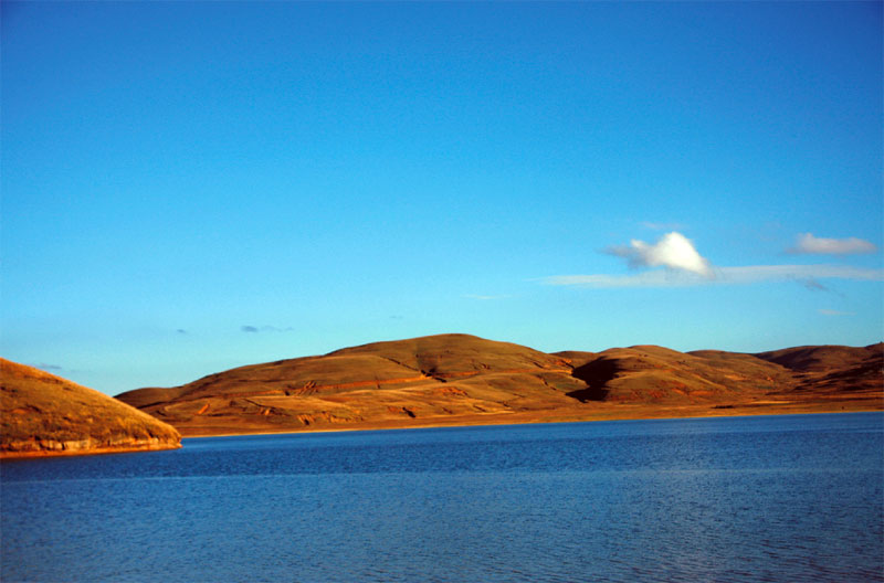出了宜賓風(fēng)景就大不一樣,時而沿著高山峽谷在走,時而又攀升在碧綠的盤山公路。行至昭通,另一片天了,天空蔚藍蔚藍,云朵開始無遮無攔,大朵大朵的掛在頭頂,而空氣也開始變得稀薄。眼前是大片大片黃褐色的山巒,樹木卻并不多,高速公路狀況極差,路兩旁的民居以平房居多,偶見一些小孩兒,三三兩兩。