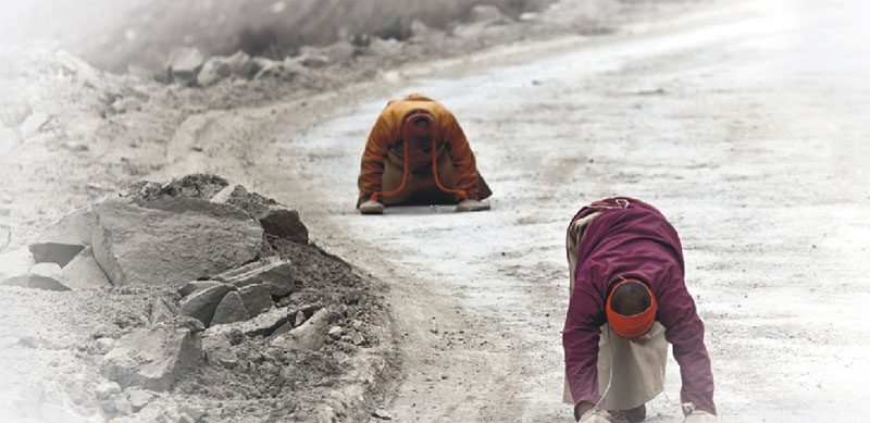 這是快樂(lè)美好的七個(gè)月,這七個(gè)月我們度過(guò)了拉薩舒適的夏季、絢麗的秋天、干燥而陽(yáng)光燦爛的冬季,領(lǐng)略了雪域高原的大美風(fēng)光和藏區(qū)神圣的宗教人文景觀。五彩的經(jīng)幡在湛藍(lán)的天空下飄揚(yáng)、清澈見(jiàn)底的高山湖泊在明媚的陽(yáng)光下泛著七彩的波光,高聳入云的雪山讓人仰望;喇嘛紅衣、匍匐在朝圣路上的信徒,在西藏這片熱土上屹立著堅(jiān)定的信仰。我不懂他們,我只是靜靜看著他們,在目光相遇的時(shí)候,給一個(gè)微笑,我便得到了發(fā)自心底的快樂(lè)、滿(mǎn)足和信任。在他們面前,一切都變得簡(jiǎn)單、虔誠(chéng)、付出也是一種快樂(lè)。認(rèn)識(shí)了車(chē)隊(duì)的巴次,知道了巴次的一些故事,留心著他的言行,我知道了一個(gè)普普通通的藏族青年,有著佛一樣的慈悲心,他就那樣付出著、快樂(lè)著……我被感動(dòng)著,感染著。