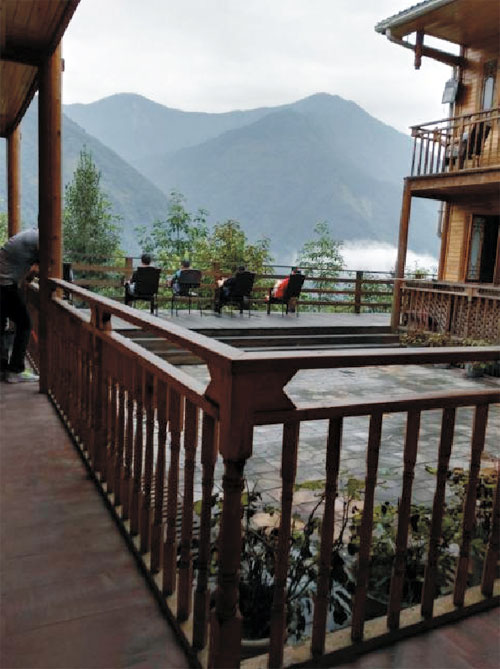 山窮水盡疑無路,柳暗花明又一村。幾個小時的奔波終于到達(dá)目的地,一個錯落有致的小村莊。大家歡聚一堂,大快朵頤,雖然廚師并不專業(yè),但勝在食材天然。酒足飯飽之后,大家沿著木梯下樓進(jìn)行飯后娛樂。我坐在露天陽臺的藤椅上休息,一陣清風(fēng)拂過,伴著竹林搖曳的聲音,剎那間居然有種“倚樓聽風(fēng)雨,淡看江湖路”般微醺的感覺。