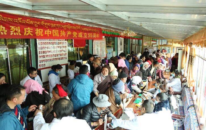 2017年3月28日,西藏阜康藥店聯(lián)合黨支部組織一支醫(yī)療小隊,前往當(dāng)雄縣烏瑪塘鄉(xiāng)郭尼村居委會開展免費(fèi)義診活動。