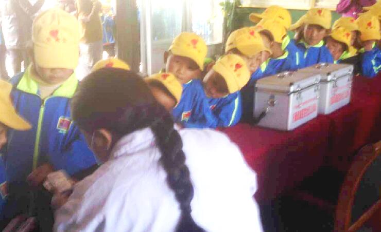 5月31日,受拉薩晚報(bào)社駐墨竹工卡縣甲瑪鄉(xiāng)赤康村工作隊(duì)的邀請,由才仁、卓瑪次仁帶領(lǐng)的西藏阜康醫(yī)院社區(qū)義診隊(duì)來到甲瑪鄉(xiāng)中心小學(xué),為小朋友送來“健康大禮包”。本次活動共計(jì)285名學(xué)生接受體檢,帶去20多種藥品價(jià)值約25000元。一聲溫馨的提醒,一盒充滿愛意的藥品,都讓孩子們感受著全社會的關(guān)愛。