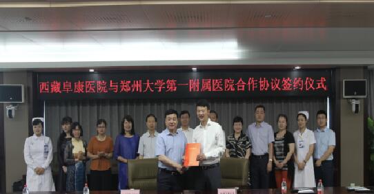 2017年6月2日上午9:00在河南鄭州大學(xué)第一附屬醫(yī)院鄭東院區(qū)8號(hào)樓會(huì)議室舉行了一場(chǎng)隆重的簽約儀式。西藏阜康醫(yī)院與鄭州大學(xué)第一附屬醫(yī)院在這里正式簽署了兩院合作協(xié)議。今后鄭州大學(xué)第一附屬醫(yī)院將在在遠(yuǎn)程醫(yī)療會(huì)診、??平ㄔO(shè)、人才培訓(xùn)、雙向轉(zhuǎn)診、科研合作方面,給予阜康醫(yī)院全力支持。